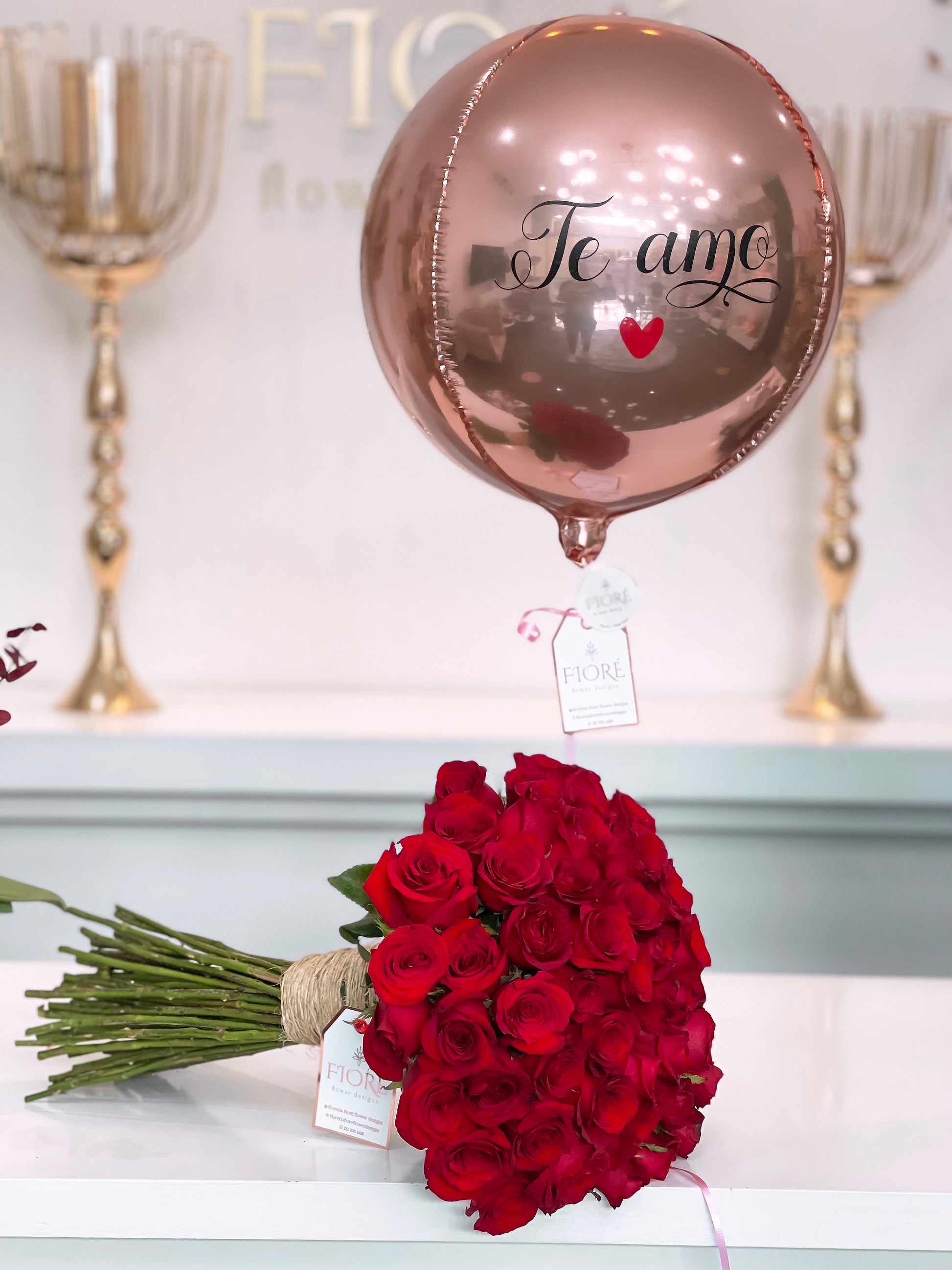 Combo de 1 bouquet tradicional rosas rojas + globo metálico con frase "Te Amo"