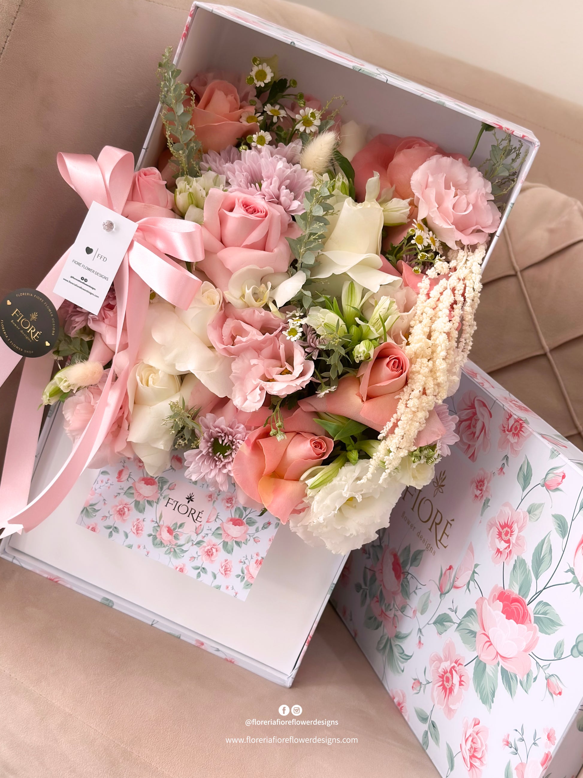 Caja de cartón rígido con impresión floral diseñada con una variedad de flores mixtas